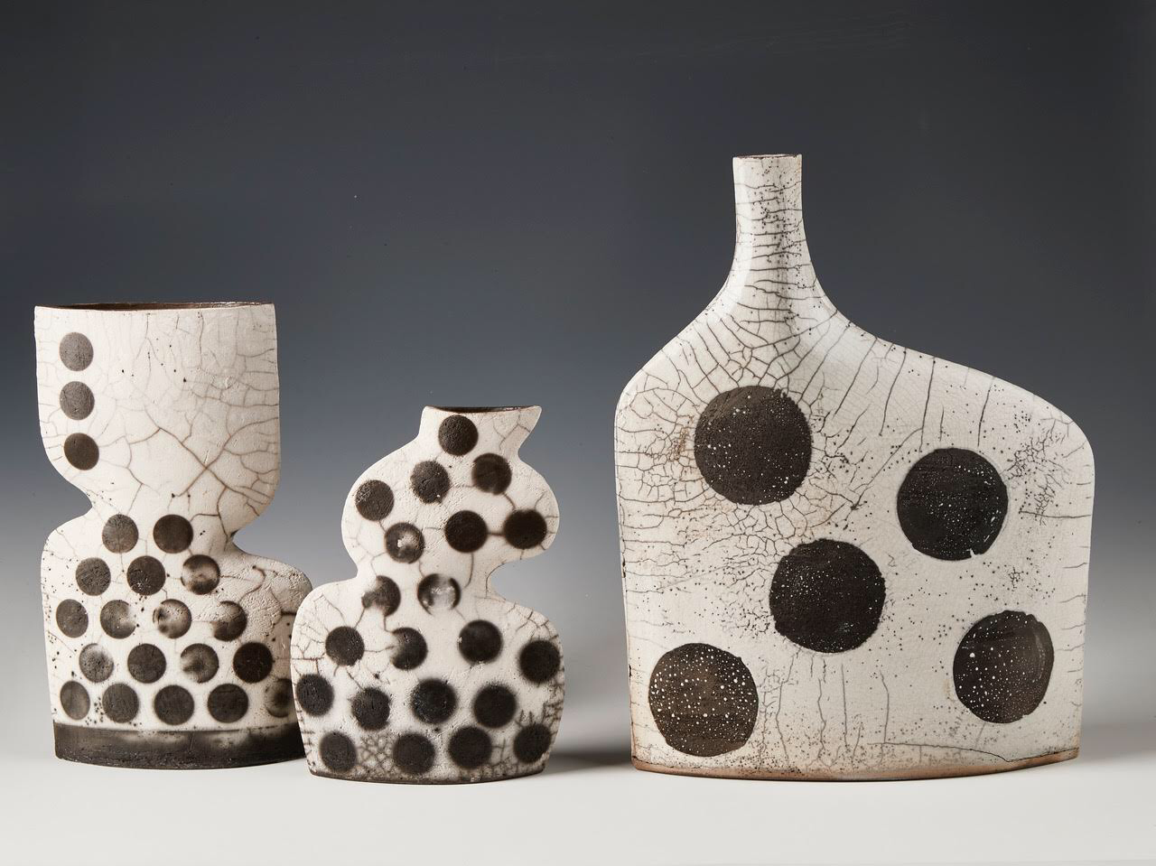 I have been developing curved asymmetrical shapes for some time, the figures often reminding me of people and a family when they are grouped together. The grouping of my work is important to me, the negative space between the curved vessels is visually as important as the piece itself.
